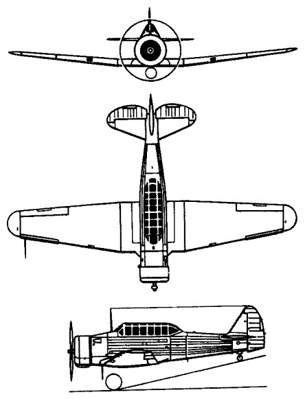 Accommodation: Tandem cockpits, with sliding enclosures. Dual controls, with rear control quickly removable. Equipment may be installed to suit machine for training, fighting or light bombing. Provision made for installation of two fixed guns firing forward through airscrew and one gun on a movable mounting in back cockpit, bomb-rack below fuselage.