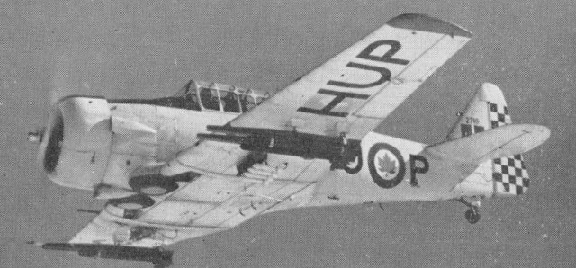 The first Harvard Mk II used by the RCAF was delivered to Camp Borden in the summer of 1940. It was an anglicized version of the AT-6A, the differences being a lengthened exhaust stack, a fixed rear canopy section, an altered instrument panel and a British style control column. The Mk II was also fitted with the capability to hold a .303 calibre air operated machine gun on the starboard wing and a cine-camera in the port wing, with a gun-sight for the front cockpit. The plane was equipped with hardpoints under the wings in order to carry 8 practice bombs. The N.A. Harvard Mk.II was one of the most important single engine training aircraft of the British Commonwealth Air Training Plan. It was known as “the pilot maker” because of its important role in preparing pilots for combat.
