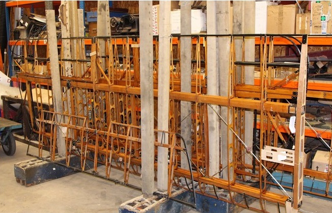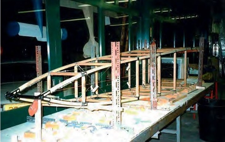 Most of the airframe is spruce, but the longerons are ash. They had woodworkers Chris Lawson, who had his own woodworking company in Skipton. They ordered the streamlined wires from Bruntons, who were making these wires during the First World War.