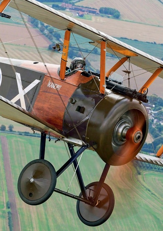Power is, of course, a factor. “This Camel has the 140hp, long-stroke Clerget engine. Somewhere in the documentation for that engine it says you must not use full throttle at sea level. Effectively it gives you a bit of enhanced performance at altitude that you’re not allowed to use low down. Full rpm would be 1,200- 1,250, and at that setting, with nearly full power on, the aeroplane is at its most cantankerous. But for what we need to do, we don’t ever need to apply that amount of power. What I’ve found is that if we take off with maybe 1,100rpm and get the climb to display height out of the way, as soon as you’re high enough come back to 1,000rpm, and then you’ve got a less challenging aeroplane.”