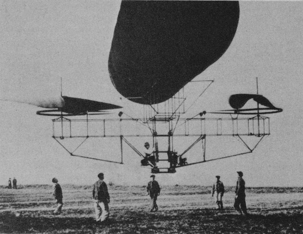 Etienne Oemichen, a young engineer with the Peugeot motor car company, began to experiment with rotating-wing designs in 1920, and in all designed and built six different vertical take-off machines. When the first of these failed to develop enough lift from its twin rotors and 25hp engine to rise off the ground, he added a hydrogen-filled balloon on top of it to give it added stability and lift.
