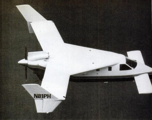 The second prototype N81PH served as testbed for improved Laser 300 version. used a 700 hp Garrett TPE331-9 and flew on February 19, 1983. It was 30 ft. long and had a wingspan of 35 ft.