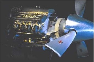 A liquid cooled V-8 piston engine in the 500-750 hp range. The OE600A model was first certified by FAA and Transport Canada in March 1998 at 600 hp.