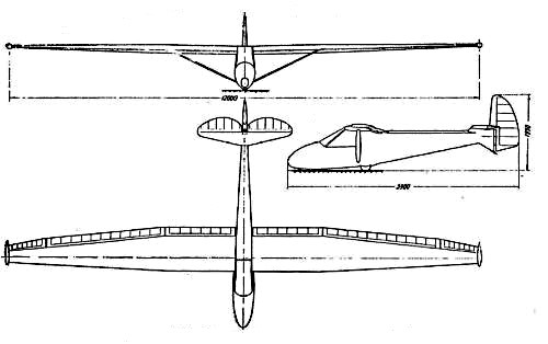 According to Bronius Oškinis, this glider is designed to be launched with a puller and to be able to reach the thermal. The glider had to be inexpensive, suitable for mass production, so that every gliding club could buy it. Oškinis applied an unprecedented innovation to gliders – hanging flaps and ailerons, which greatly increase the lifting capacity of the wings.