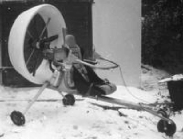 One of the first engine powered parachute wing vehicle was designed in Poland in mid-eighties, by aeronautical engineers: Marek Debski Ph.D. and Andrzej Komor Ph.D. The power unit consisted of the KFM piston engine and two counter-rotating over-ducted propellers. The idea of counter-rotating was to eliminate possible gyro effects. The power unit was mounted on a vehicle’s carriage. All the structure are easily demounted and packed into a car luggage compartment for transport purposes.