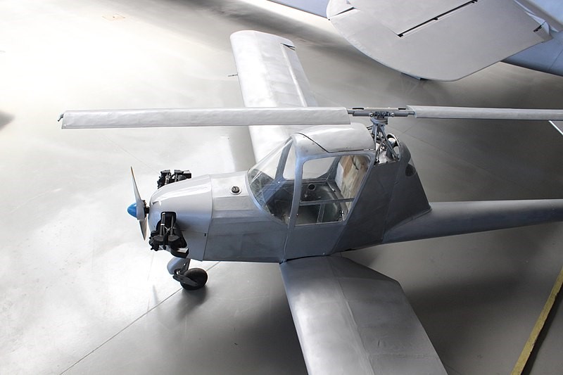 The Aeroscooter is constructed of metal, and represents the minimum safe structure required to unite pilot, engine and flying surfaces. It fitted with a two-bladed rotor to reduce descent rate and stall in the event of an engine failure.