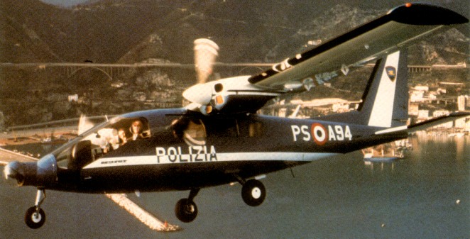 The Observer has a new forward fuselage incorpo¬rating a Plexiglas nose that offers forward and downward fields of vision comparable with those of a helicopter. The first Observer flew in West Germany during February 1976, and aircraft emerged from the Italian production line from July 1980. Since that time small but useful sales have been made to several police and para-military air arms. The Italian police use the type with the ATAL video surveillance system developed in France by Aérospatiale.