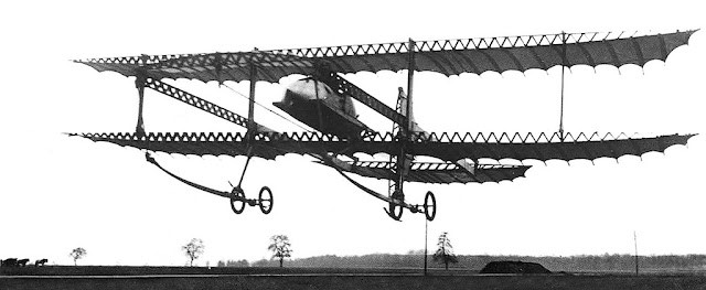The first biplane built by Louis Paulhan in September/October 1910 [not February 1911 as given by Opdycke] in association with Henri Fabre. This explains the Fabre like wing construction. It was a big pusher with elevator in front and huge skids, powered by a 50 hp Gnome rotary engine. A later version of the biplane, featuring ‘conventional’ wooden spars, was notable for it being able to be re-configured, so that it could be towed on a road behind a car, and also to be demountable so that all its parts could be fitted into packing crates.