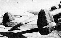 In order to increase the directional stability of the model, the area of the vertical surfaces of the tail was increased by about a third (from 0.77 to 1 m²). The transverse stability of the plane was also considered insufficient and to increase it, it was considered to increase the sagging of the leading edge of the wing consoles (this would already be introduced in the serial Pe-2). With the flaps fully extended, landing was difficult, since there was not enough rudder travel to achieve the necessary angle. For this reason it was recommended not to fully extend the flaps and in the series models to modify the angle of incidence of the stabilizers.