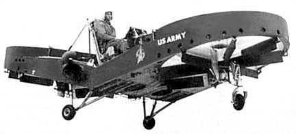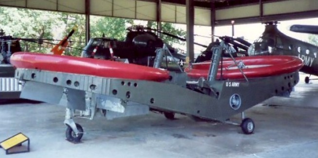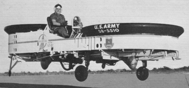 While the Army was pursuing the flying platforms, they were also investigating larger rotorcraft along similar lines, called the “flying jeeps”. Some sources imply that they were intended mostly for hovercraft operation, with an ability to fly over obstacles or impassable terrain when necessary, while other sources indicate they were regarded as helicopter-like utility vehicles that operated normally as flying machines. Whatever the case, the US Army Transportation Research Command began an investigation into the flying jeeps in 1956, leading to award of contracts for prototypes to Chrysler, Curtiss-Wright, and Piasecki in 1957.