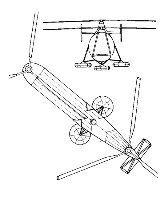 The HRP-1 (redesignated as PV-3) carried a crew of 2 sitting in tandem, and its 11.33cu.m cabin could accommodate 8 passengers, 907kg of cargo or 6 stretchers. The single engine was mounted in the rear part of the fuselage, with a clutch and gearbox amidships from which drive shafts ran to reduction gearboxes below each of the rotor hubs.