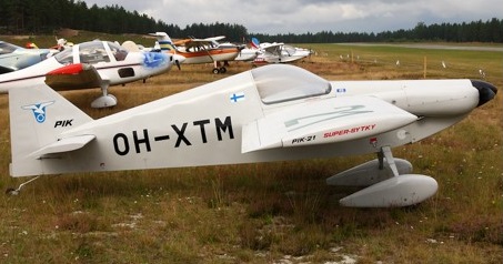 The 1981 PIK-21 Super-Sytky is a mid-wing monoplane Formula V racer, powered by a 53 hp VW-1600 engine. A Tavastia College student project of wooden construction, the two built, OH-XTM & OH-XMR, have a wing span of 5.3 m.