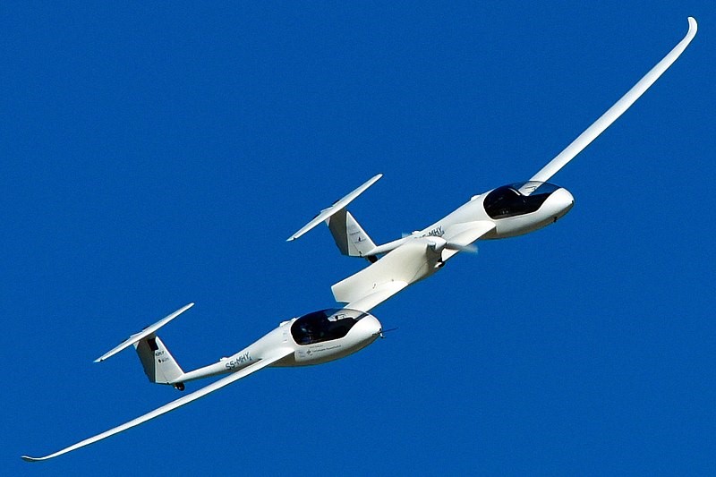 In late September 2011, Google sponsored the CAFE Green Flight Challenge at the Sonoma County Airport in Santa Rosa, California. Three aircraft competed and two met the challenge requirements to fly 200 miles in less than 2 hr and use less than the energy equivalent of one gallon of fuel per passenger. The first place prize of $1.35 M was won by the Pipistrel-USA.com team led by Jack Langelaan of State College, Pennsylvania. Pipistrel’s new, twin-fuselage plane was created by combining two Taurus G2 fuselages, connected by a 5-m-long spar. A 145-kW brushless electric motor, developed for Pipistrel’s new 4-seat Panthera aircraft, is mounted between the passenger pods and drives a 2-m-diameter, two-bladed propeller in a tractor configuration. The Taurus G4’s full wingspan is about 21.36 m (75 feet) and it flew 200 miles nonstop while achieving 403.5 passenger mpg.