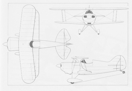 The Pitts Special is a single seat, open cockpit, fully aerobatic biplane. The fuselage is made up of a welded steel tube structure to which plywood formers and wooden stringers are fitted, the whole being fabric covered except for the aluminium front panels. Roth wings have solid spruce spars to which are fitted wooden ribs, each wing panel being internally and externally wire braced and fabric covered. The wings are set at 6 degrees sweep back at the quarter chord line, Frise type ailerons are fitted only to the lower wings, which have 3 degrees dihedral. Single faired interplane struts and N type cabane struts are fitted. The wing airfoil section is an M6.The main undercarriage is made up of welded steel tube and utilises rubber cord shock absorption. The tail wheel is steerable. A 16 Imperial gallon fuel tank is located immediately aft of the firewall. Engines of from 100-200 h.p. may be fitted.