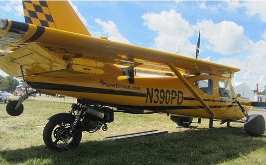 The Plane Driven PD-1 is a modification to the Glasair Sportsman 2+2 to convert it into a practical roadable aircraft. Trey Johnson, a homebuilt aircraft built the PD-1, intended to be an aircraft first, and a car second. The approach uses a mostly stock aircraft with a modified landing gear “pod” that carries a separate engine for road propulsion.