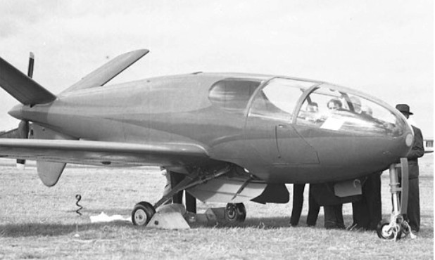 A three-seat light aircraft with vee tail and pusher propeller, the Planet Satellite was powered by a Gipsy Queen 32 via an extension shaft. The first aeroplane constructed entirely of magnesium sheet, and with retractable tricycle undercarriage.