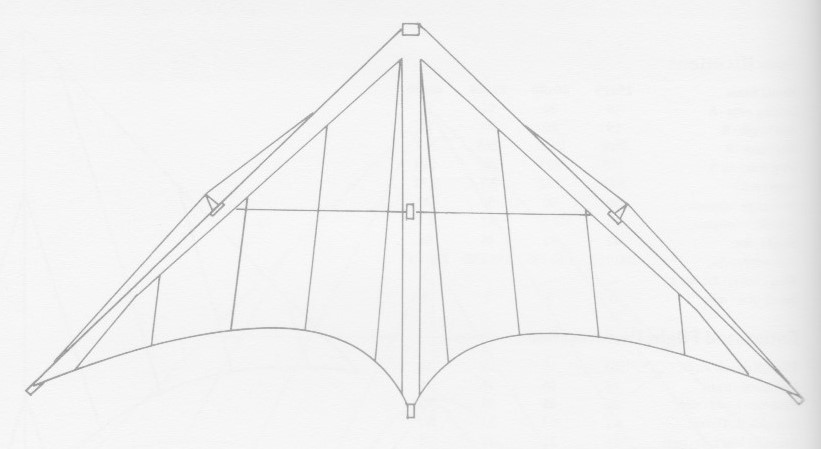 The Thermal Shark is a high performance medium aspect ratio Rogallo. Tip drag has been reduced by the mildly cylindrical leading edge and trailing edge cut.