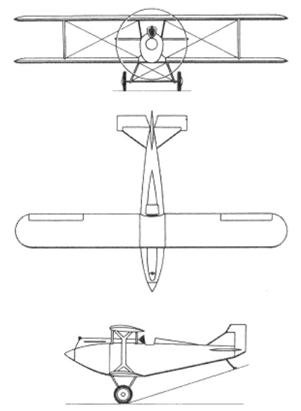 The wing was built of wood and featured a double spar structure. The ailerons were located only on the lower wing, protruding slightly outside the trailing edge. The wing skin was made with plywood up to the location of the first spar. From there tissue was used. The trailing edge was made with steel cables and in the plan view it was shown as the wave trace.