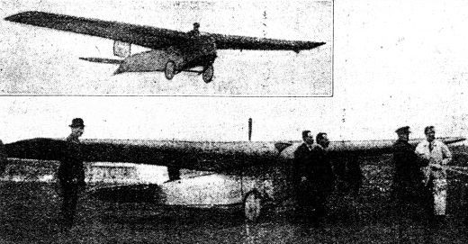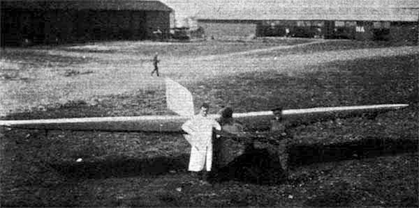 “FEBRUARY 10 will go down in history as the first occasion on which a motorless flight was made in Belgium. The monoplane glider used in the flight was built by M. Poncelet, who is, we understand, a foreman in the works of the S.A. .Belge de Constructions Aeronautiques. The wind was only very light, and as the flight was made over the Brussels aerodrome, or, in other words, over flat country, no extended flight was expected nor attempted. With the rubbers pulled out to half their length only the machine got off well, and made a hop of about 120 yards, piloted by Lieut. Simonet, who is a test pilot in the Belgian Army Air Service. During the short flight the machine was found to be well balanced, and seemed to answer its controls readily.