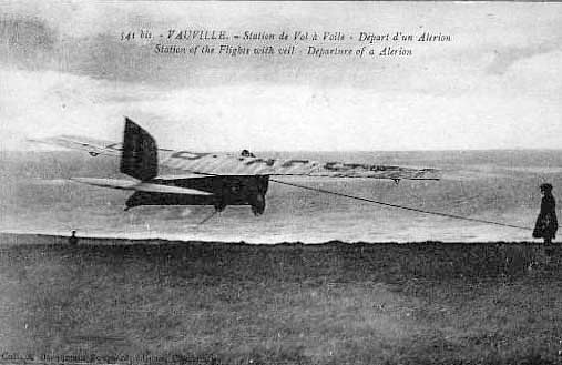 On 24 August Simonet took-off but following a sudden return of the bungee cord, it remained attached to the apparatus and went away with it. Simonet who “felt that something was wrong” did not notice his unexpected overload … He held the air for 10 minutes, but not managing to gain height, he landed in the meadow of … The bungee cord which weighed more than 15 kg and was 40 to 50 meters long offered enormous resistance to the advancement of the machine and it is even remarkable that it was able to fly for so long in such conditions.