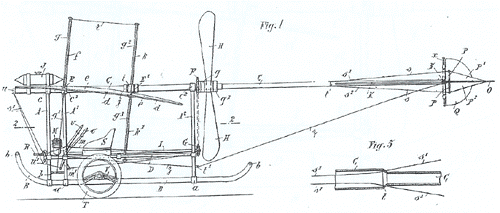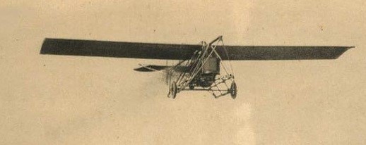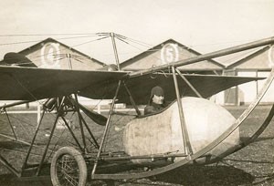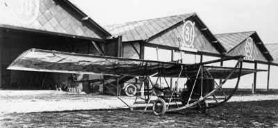 This photograph represents the 1912 version flown by Marcel Goffin at Reims or Amiens. The undercarriage and metal framework around the nacelle containing the engine and pilot are distinctive.