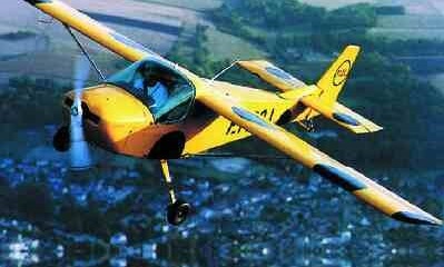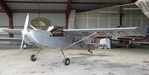 The Coccinelle’s fuselage has a rectangular section throughout and its profile is straight edged except under the engine, where it curves upwards. The side-by-side seats are ahead of the wing leading edge and largely enclosed under a one piece, rear hinged, part bubble type canopy. Behind this are further transparencies which can vary from builder to builder but extend rearwards a little way into the wing. Most Coccinelles have a tail wheel undercarriage with front wheels on thin, steel cantilever legs, though a tricycle undercarriage is an option. Some builders have added spats.