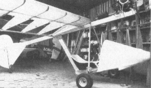 The Sabre is a high wing strut braced tail dragger. Structure utilises two aluminum tubes for spars and fibreglass ribs and leading edges. Fitted with large tires and steel spring suspension, the Sabre is designed for the farm and rough field work. A large pilot protection pod is fitted.