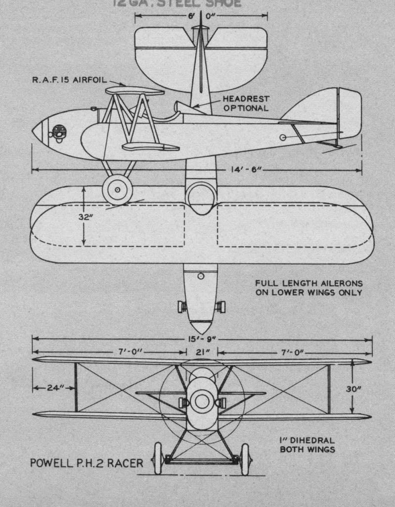 Designed by Professor C.H. Powell, teacher at the Aeronautics Department of the University of Detroit, the PH.2 was an equal span biplane with welded steel tube fuselage and tail surfaces, appearing in 1923.