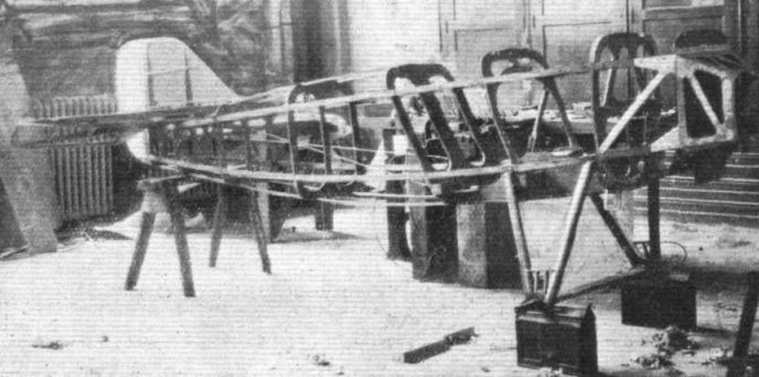 The biplane racer used an all wood fuselage with birch paneling. The wing spars were also wood with fabric covering. Uniquely, the aileron hinges were made of leather.