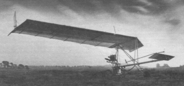Single seat single engined high wing mono¬plane with two axis control. Wing has swept back leading and trailing edges, and tapering cord; no tail, canard wing. Pitch control by fully flying canard; yaw control by tip rudders; no separate roll control; control inputs through stick for pitch/yaw. Wing braced from above by kingpost and cables, from below by cables; wing profile Klaus Hill (Fledgling); double surface. Undercarriage has three wheels in tricycle formation; bungee suspension on all wheels. No ground steering. No brakes. Aluminium tube framework, without pod. Engine mounted below wing driving pusher propeller.