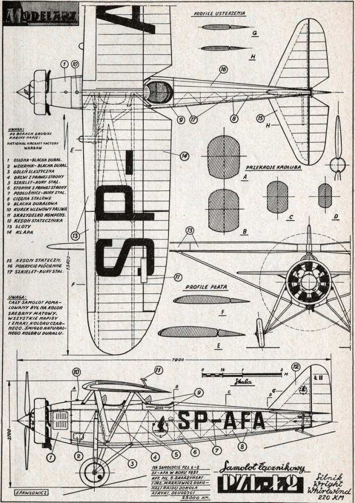 It had a 9-cylinder air-cooled Polish Skoda Works licence-built Wright Whirlwind J-5A radial engine delivering 240 hp (179 kW) at take-off and 220 hp (164 kW) nominal, driving a two-blade wooden propeller, 2.7 m diameter (in SP-AFA – metal one). 190 litre fuel tank in a fuselage (600 l in SP-AFA). Cruise fuel consumption was 45-50 l/h.