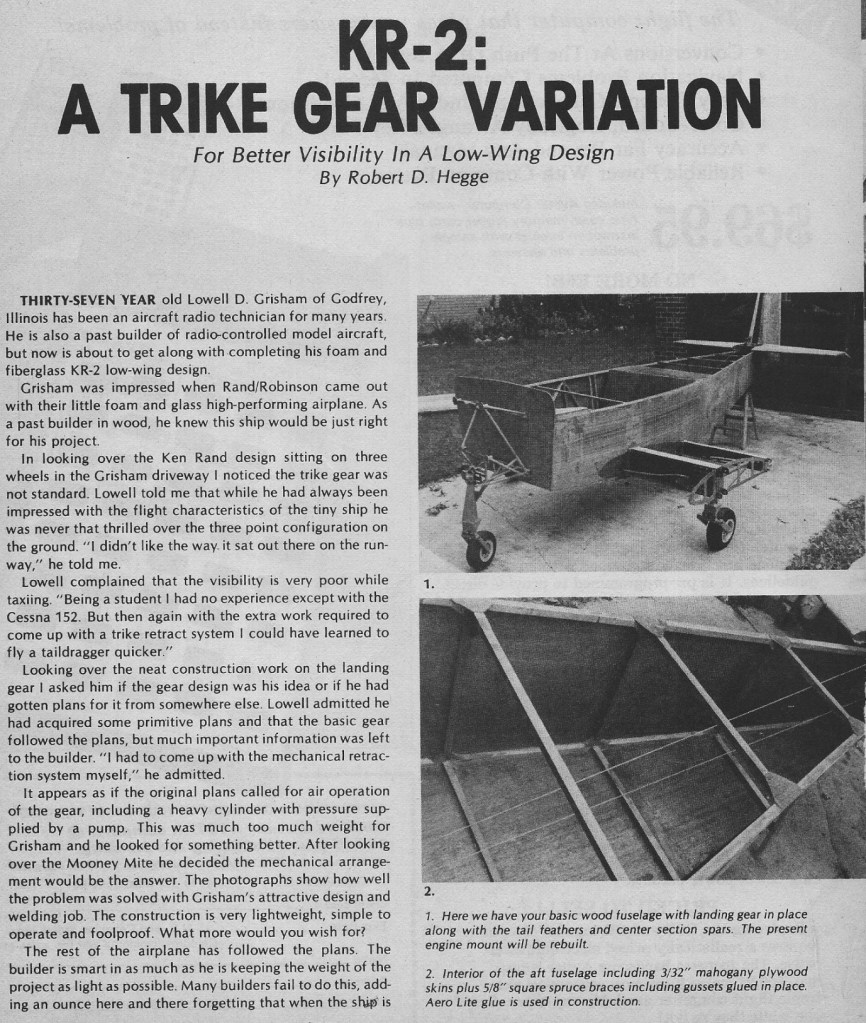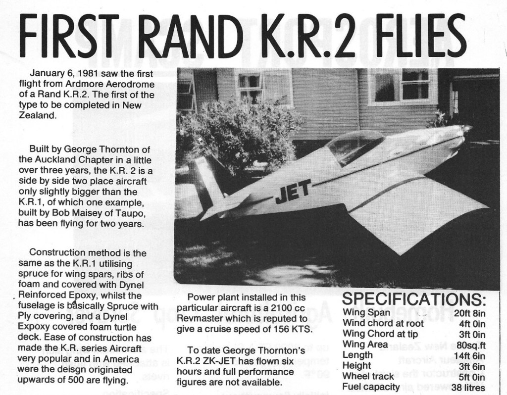 Rand KR-2 Builds 23/03/2025Terry Back to Rand KR-2 April 1997 May 1982 Share this: Click to share on X (Opens in new window) X Click to share on Facebook (Opens in new window) Facebook Like Loading... Related