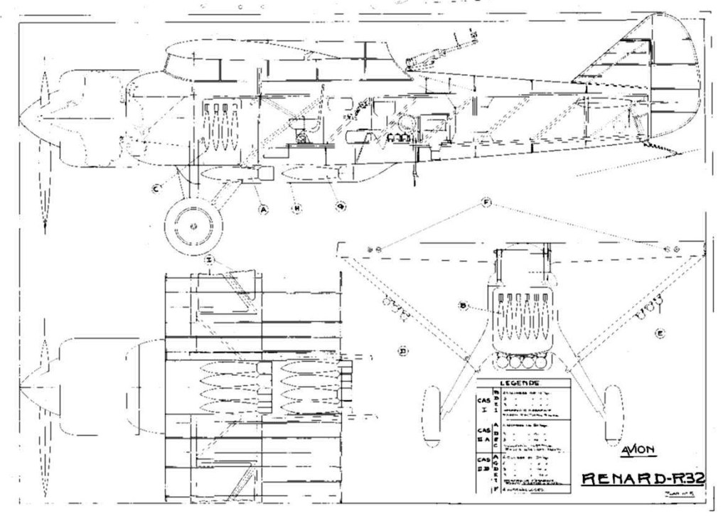 After 1936 a second aircraft was fitted with an enclosed canopy and a Gnome-Rhône Mistral Major radial engine, becoming the R-32, with this then being replaced by a Hispano-Suiza 12Y engine, but the R-32 did not show sufficiently improved performance to gain a production order. The Renard R-32 was reworked as a normal R.31 thus becoming the 35th machine for the AéM.