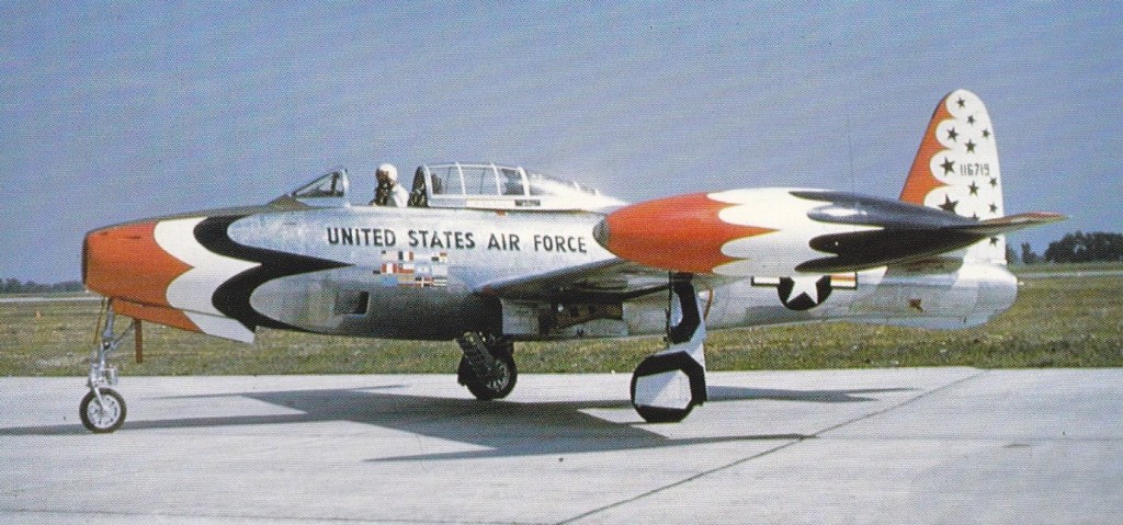 The F-84G was the first type to see service with the U.S. Air Force Thunderbirds, F-84G 51-16719 in 1954.