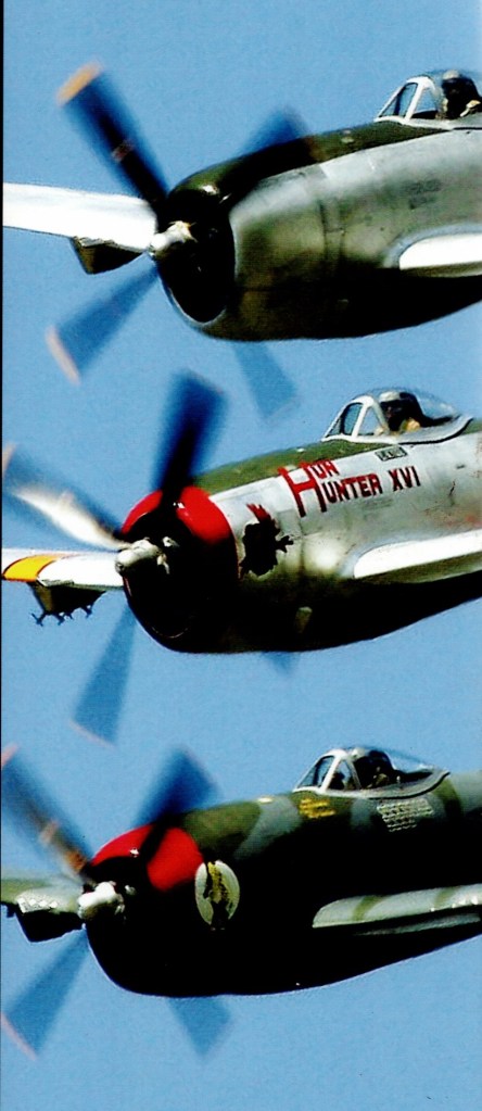 Leading the Squadron, Capt Leland P. Vining is followed by flight leaders Capt William L. Urquhart, Capt Wayne P. Rothgeb, and Capt Lewis Lockhart.