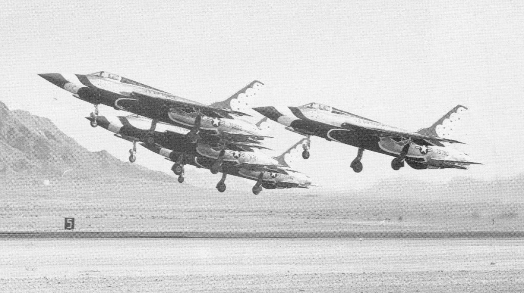 Republic F-105 Thunderchief Gallery 25/03/202526/07/2025Terry Back to Republic F-105 Thunderchief F-105B Thunderchief F-105B Thunderchief Thunderbirds F-105B Thunderchiefs, Nellis AFB, Nevada, 1964. Unsuitable for aerobatics the type gave only six public performances Share this: Share on X (Opens in new window) X Share on Facebook (Opens in new window) Facebook Like Loading... Related