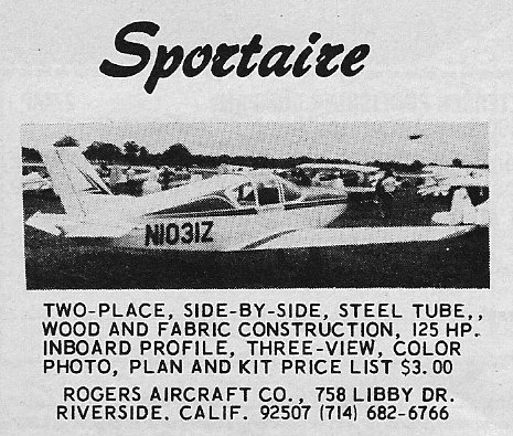 This two-place, low-wing monoplane stands on tricycle gear and is propelled by a Lycoming 125-hp engine. Building materials include tubular steel, wood and fabric.