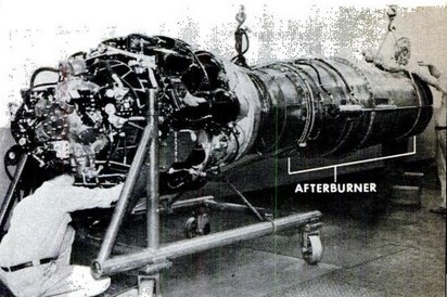 The new J48 in 1950 powering the North American YF-93A developed 6250 lb thrust, with another 1750 lb with afterburner. It was also planned to power the Navy’s new F9F-5 Panther.
