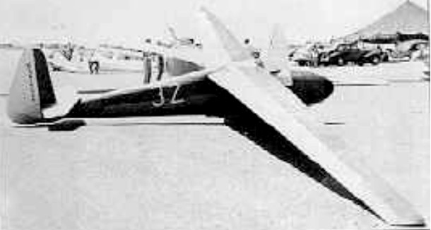 The RJ-5 became one of the world’s most famous sailplane when Dick Johnson flew it 861 km/ 535 miles in 1951 for a world sitance record that stood for 13 years. It was one of the first sailplanes to utilize a laminar airfoil and to archieve a glide ratio of 40 to 1. With it Dick Johnson won the 1950, 1951, 1952 and 1954 Nationals and set a 510/ 317 miles National goal record, a 584 km/ 363 miles National distance record, a 85.0 kph/ 45.9 kt/ 52.8 mph 100 km. Triangular speed course record as well as the world distance record.