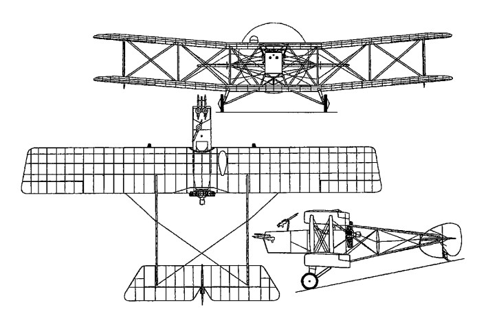 Designated as an “Armoured Experimental” type, the A.E.1 was intended as a specialised ground-attack fighter, for which purpose it was to mount a pair of 7.7mm Lewis guns in the nose, with a limited degree of movement in azimuth and depression. A third Lewis was to be pillar-mounted in the front, observer’s, cockpit for self-defence. Like the N.E.1, the A.E.3 was a large three-bay equi-span biplane, differing principally in the construction and shape of the nacelle, which was armoured with steel plate and provided stowage for 32 ammunition drums.