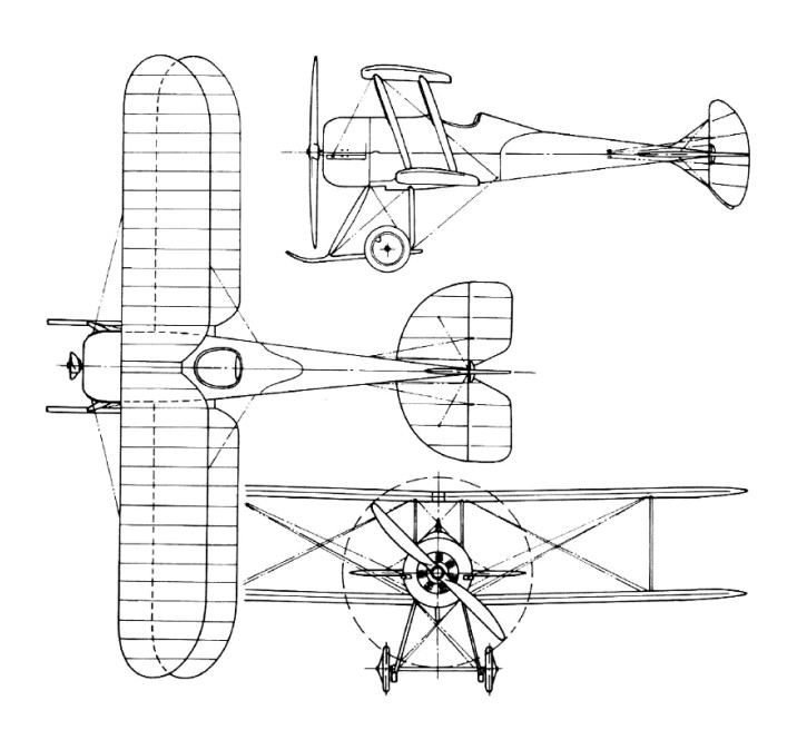 The S.E.2 was a rebuild of the unarmed B.S.1, which was designed at Farnborough by Geoffrey de Havilland assisted by H P Folland and S J Waters, and flown in early 1913. Designated as a “Bleriot Scout”, the B.S.1 was a single-bay equi-span biplane with a circular-section fuselage which was of monocoque construction aft of the single-seat cockpit. Power was provided by a partially-cowled 100hp Gnome rotary engine. The B.S.1 achieved 148km/h and a climb rate of 4.6m/s in early tests, but was badly damaged on 27 March 1913. It was then rebuilt with a redesigned tail unit that included a semicircular tailplane with a lifting profile, divided elevators, a small fin and large rudder. With a fully-cowled 80hp Gnome nine-cylinder rotary engine, the aircraft flew again in October 1913, being redesignated S.E.2 as a Scouting Experimental (although the S.E. series had earlier been intended for “Santos Experimental”, of canard configuration).