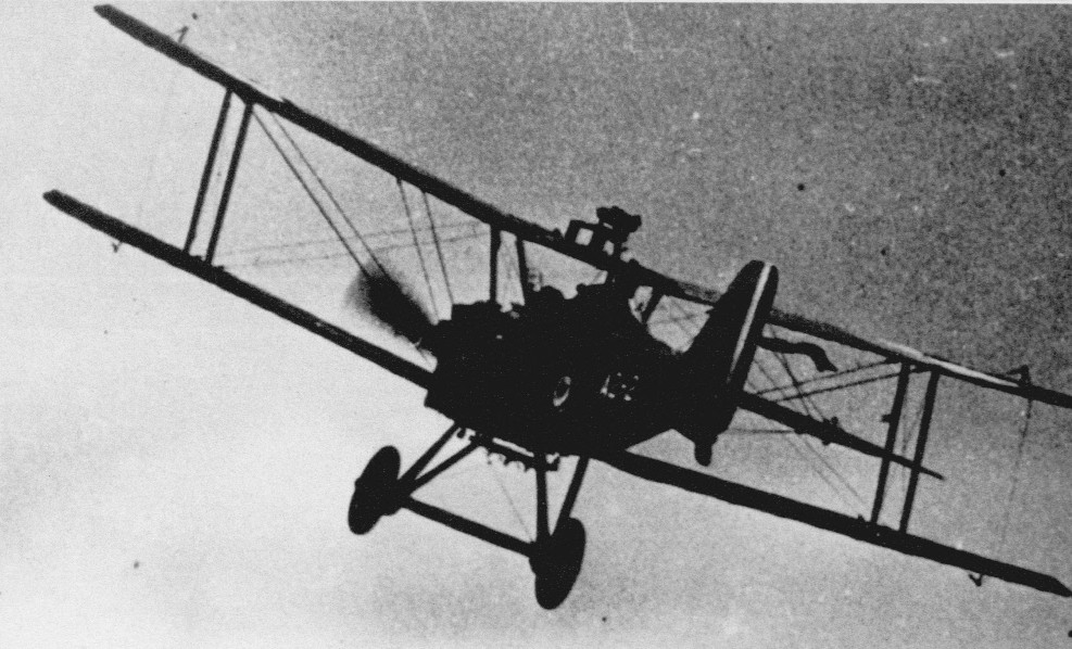 S.E.5s entered service with No. 56 Squadron in France in April 1917, and were followed by the improved S.E.5a with 200 240 hp versions of the Hispano and later the 200 hp Wolseley Viper. The higher powered Hispanos gave persistent trouble at first, but when this was overcome the little fighter soon showed itself the master of the formidable Albatros and Pfalz scouts used by the enemy. Its standard armament comprised one Vickers gun on the engine cowling and a Lewis gun on a movable mounting above the centre ¬section, which enabled it to be fired upwards if required. Light bombs were often added for ground attack duties. Altogether 5205 S.E.5’s and S.E.5A’s were built.