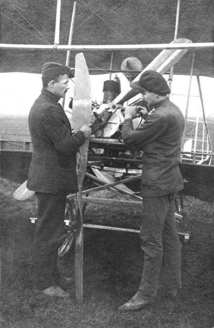 After returning to Gorica, with his brother’s help Edvard Rusjan built a motor biplane on the model of the Curtiss and Farman aircraft, which had been most successful in Brescia. In the fall of 1909, the Rusjan brothers began work on a powered airplane using a 3-cylinder, 25-horse-power. Anzani-model engine. The airplane was a canard-type biplane with paper covered wings, 8 m wingspan, with the larger part of the horizontal stabilizer forward of the wings.