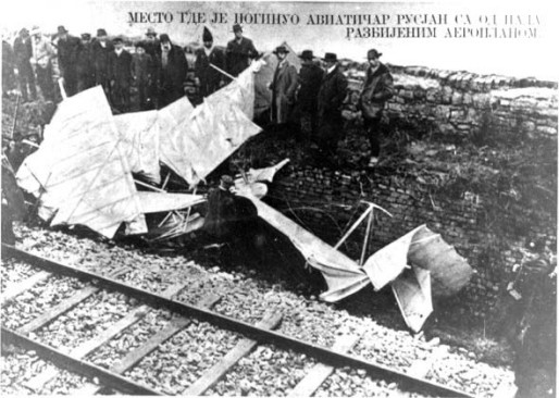 The first Serbian air meeting, which was organised on 9 January 1911, was fatal for Rusjan. In impossible weather conditions, Edvard demonstrated courageous flying to the Belgrade crowds, who had not until then seen such a thing. His takeoff and flight over the town and a railway bridge over the Sava River were uneventful but when he flew close to the Kalemegdan fortress, just before landing a strong gust of wind tore off the wing of his aircraft, at an approximate height of 20 meters.