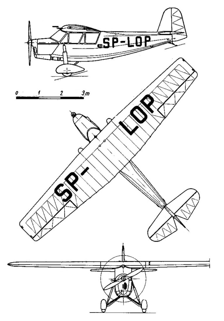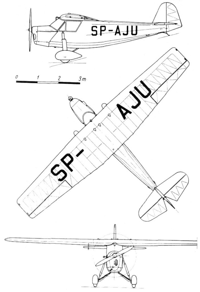 The production model differed from the prototype in having a redesigned undercarriage with medium-pressure wheels and a more efficient windscreen and improved cabin windows. The first two production machines, the Cirrus-Hermes IIB powered SP-AJA and SP-AJB, c/ns 58 and 59, named Kolejarz I (Railwayman) and Kolejarz II, were financed by the Railwaymen’s Union, and officially presented to the Warsaw Aeroclub on November 13, 1932.