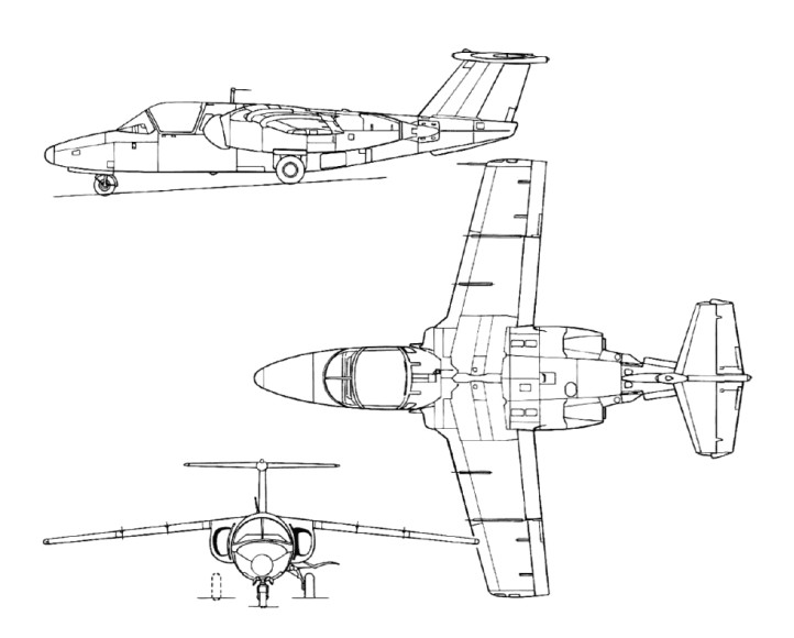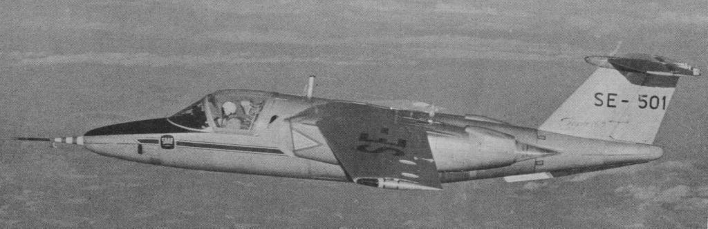The initial test flight was delayed to find an appropriate engine, eventually found in the 745kg thrust Turbomeca Aubisque. The first SAAB 105 prototype, registered SE-501, was flown on 29 June 1963. A second prototype, SE-502, flew on 17 June 1964.