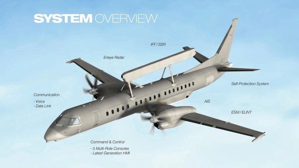 For the Swedish military the SAAB-340AEW Erieye airborne early warning version was developed, the contract for which was signed by the Swedish air force on 3 February 1993.