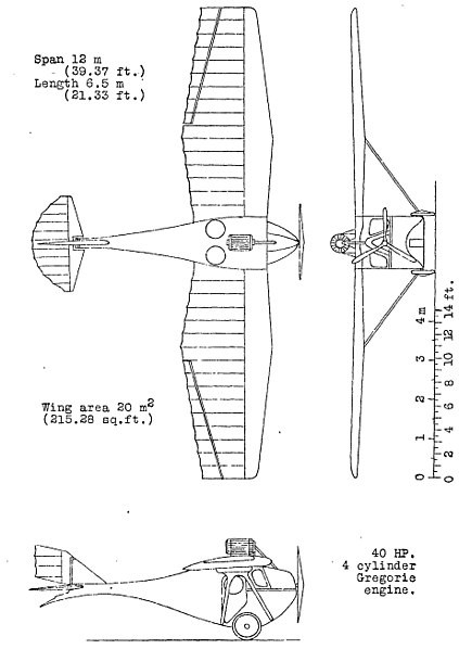 Powerplant: 1 × Grégoire 4-cyl, 32 kW (43 hp) at 1,240 rpm
