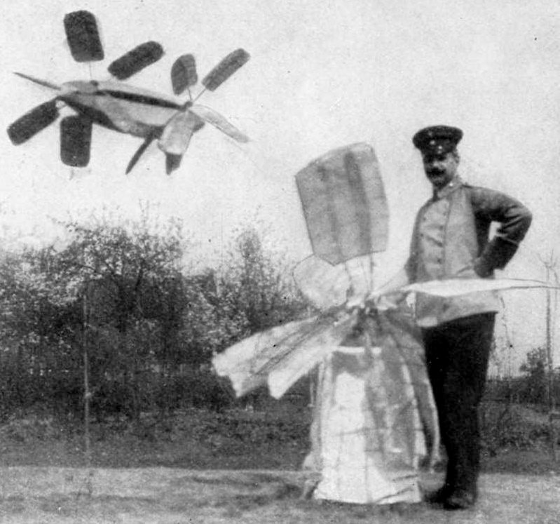 This machine with two four-blade propellers but no wings was the subject of a detailed article in Flugsport and patents in several countries. It was constructed by Ingenieur Julius Schülke of Jena, Germany, in 1909 together with his son Oberleutnant Schülke. Nothing is known of tests, but it looks very unlikely that they would have led anywhere.