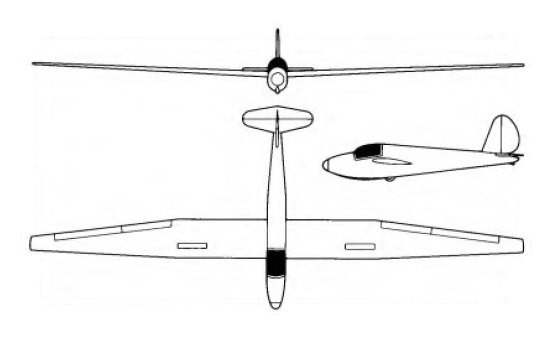 Final production versions, also with the larger vertical tail surfaces, were the 1-23H and 1-23H-15, the H, of which 8 were built, having a span of 52ft 8in and limiting speed DFS-type air brakes which replaced the double spoilers of earlier versions, as well as detachable wing tips enabling it to be converted to a Standard Class 15m span, in which form it was known as the 1-23H-15. The pilot sits over the leading edge under a blown one-piece sideways-opening Perspex canopy, and there is room behind him for a radio, barograph and oxygen equipment. The 1-23H and H-15 has a squared-off top to the fin and rudder. The more numerous H-15 version has a wingspan reduced to 15.0 m / 49.2 ft qualifying it for the FAI-OSTIC Standard Class. It was also produced with removable tips increasing the span to 16.1 m / 52.8 ft. 39 of this model were built.